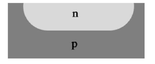 위의 그림은 p 와 n 구간이 잘 나누어져 있게 표현되었는데, 이는 이론적으로 pn 접합에 대해 배울 때 많이 사용되는 그림이고 실제로는 아래의 회색 형태와 비슷하게 되어 있다.
